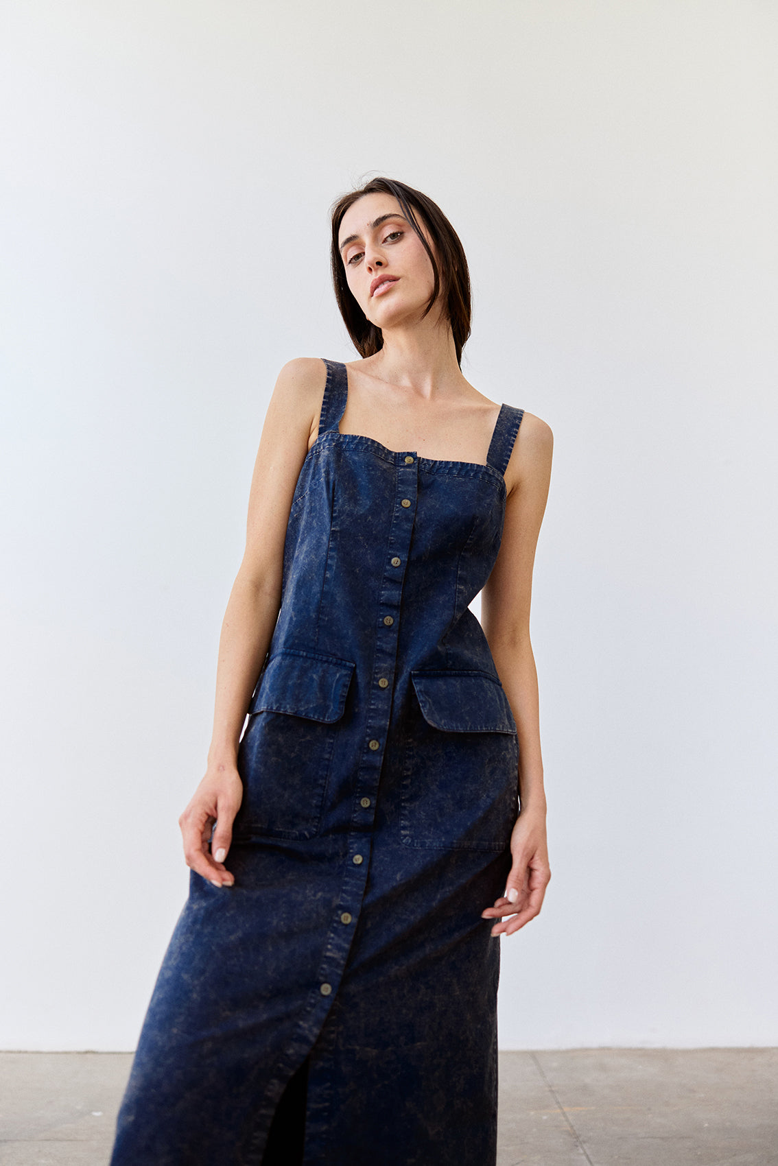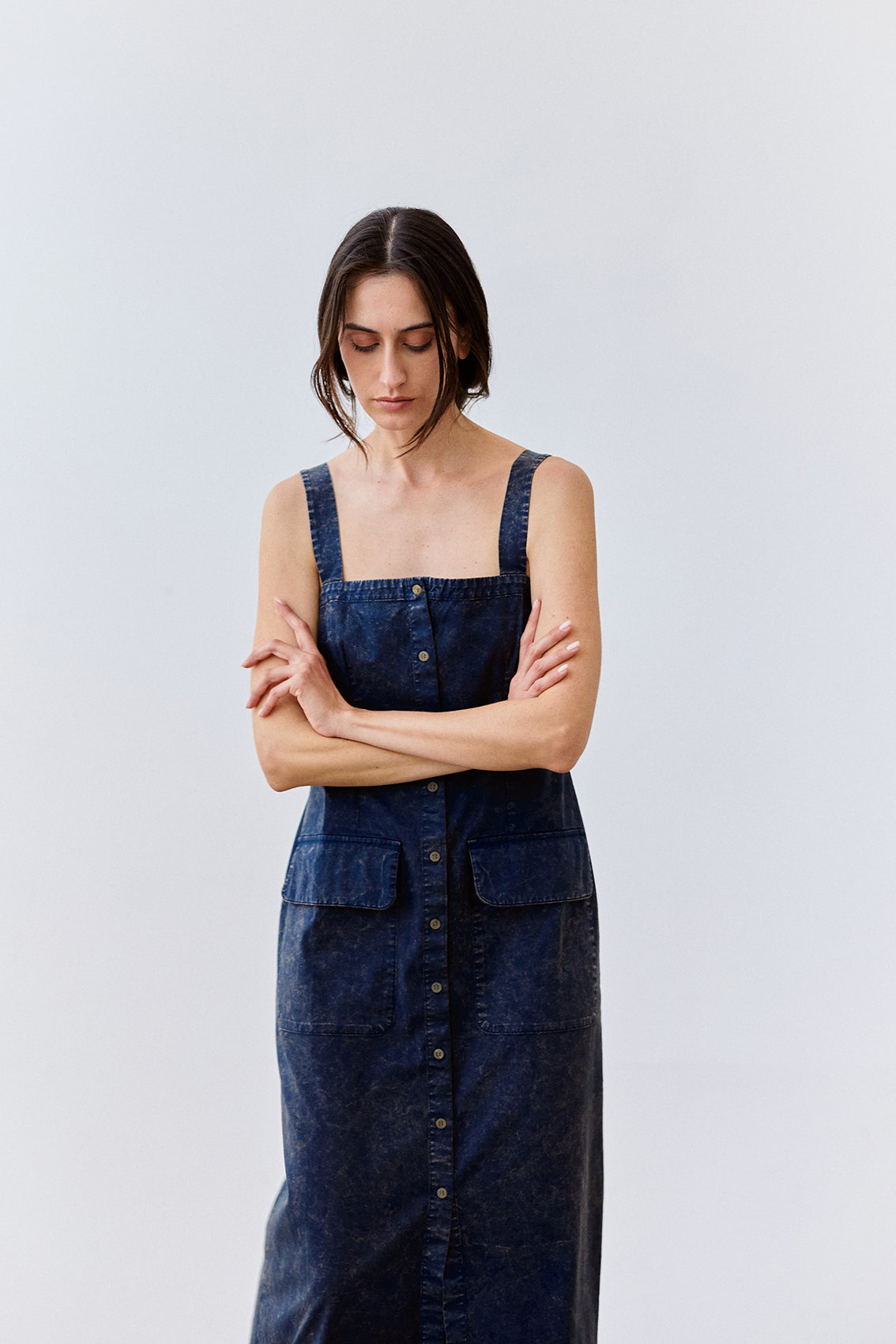 Buttoned Sleeveless Cotton Dress - Piedra Washed