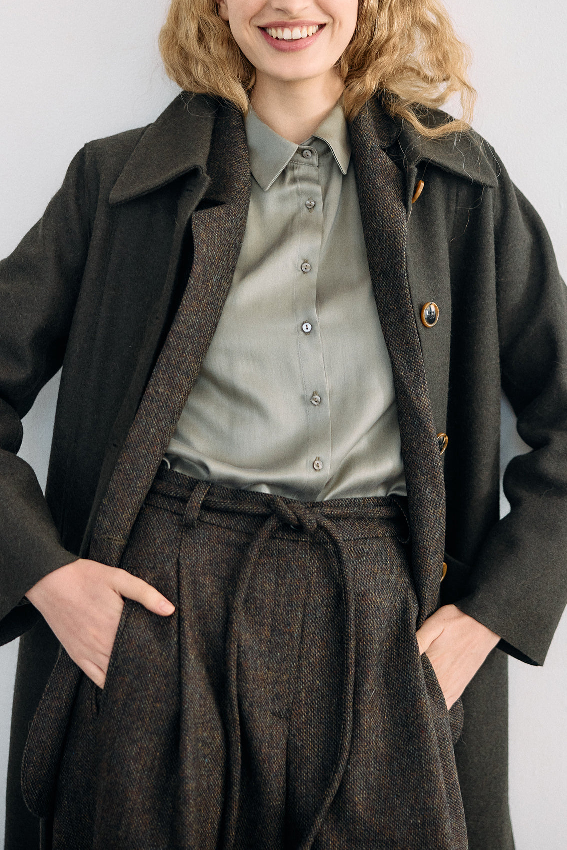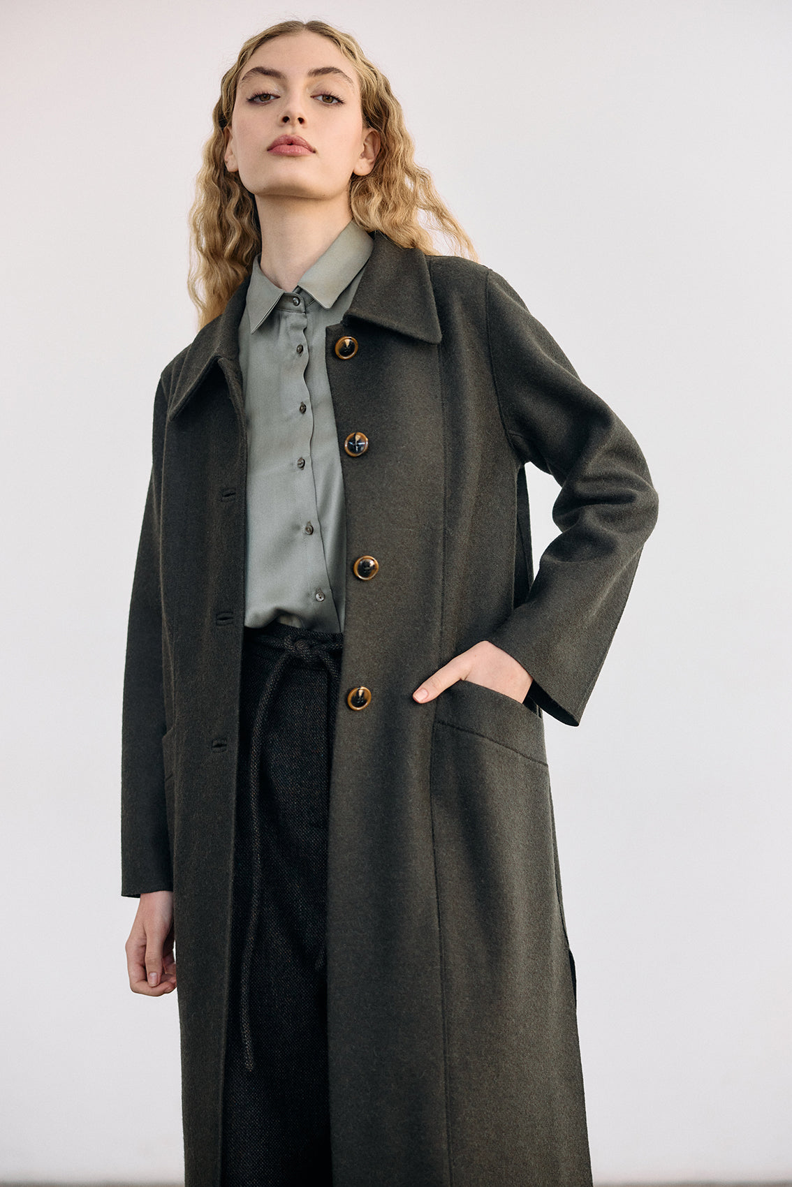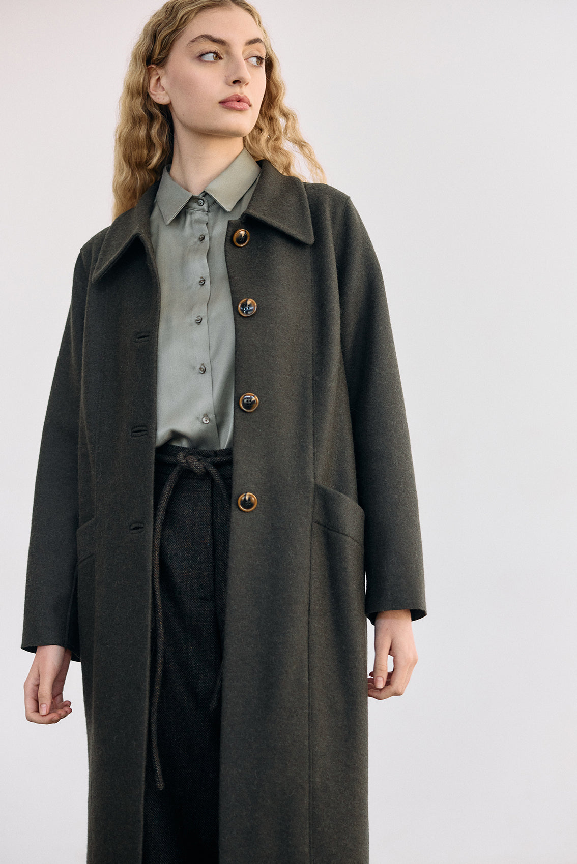 Collared Felted Alpaca/Wool Long Coat - Bosque