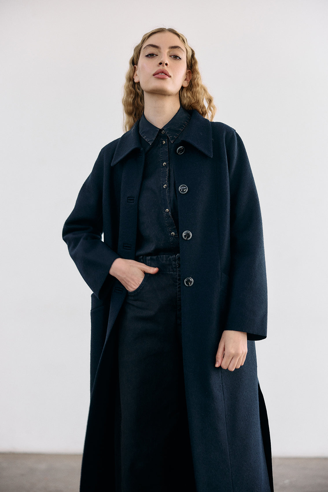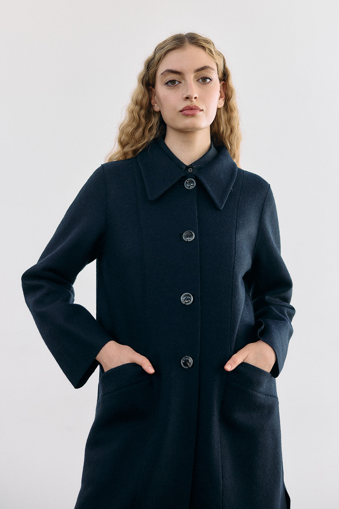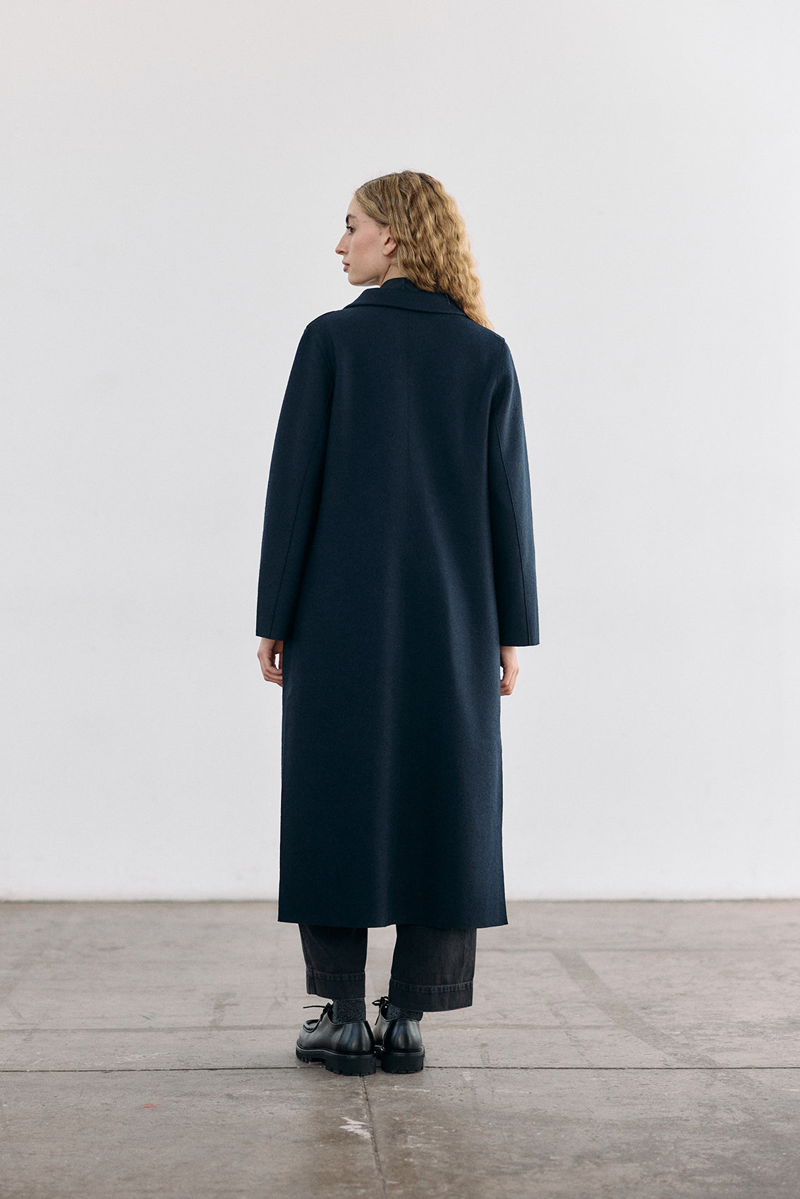 Collared Felted Alpaca/Wool Long Coat - Medianoche