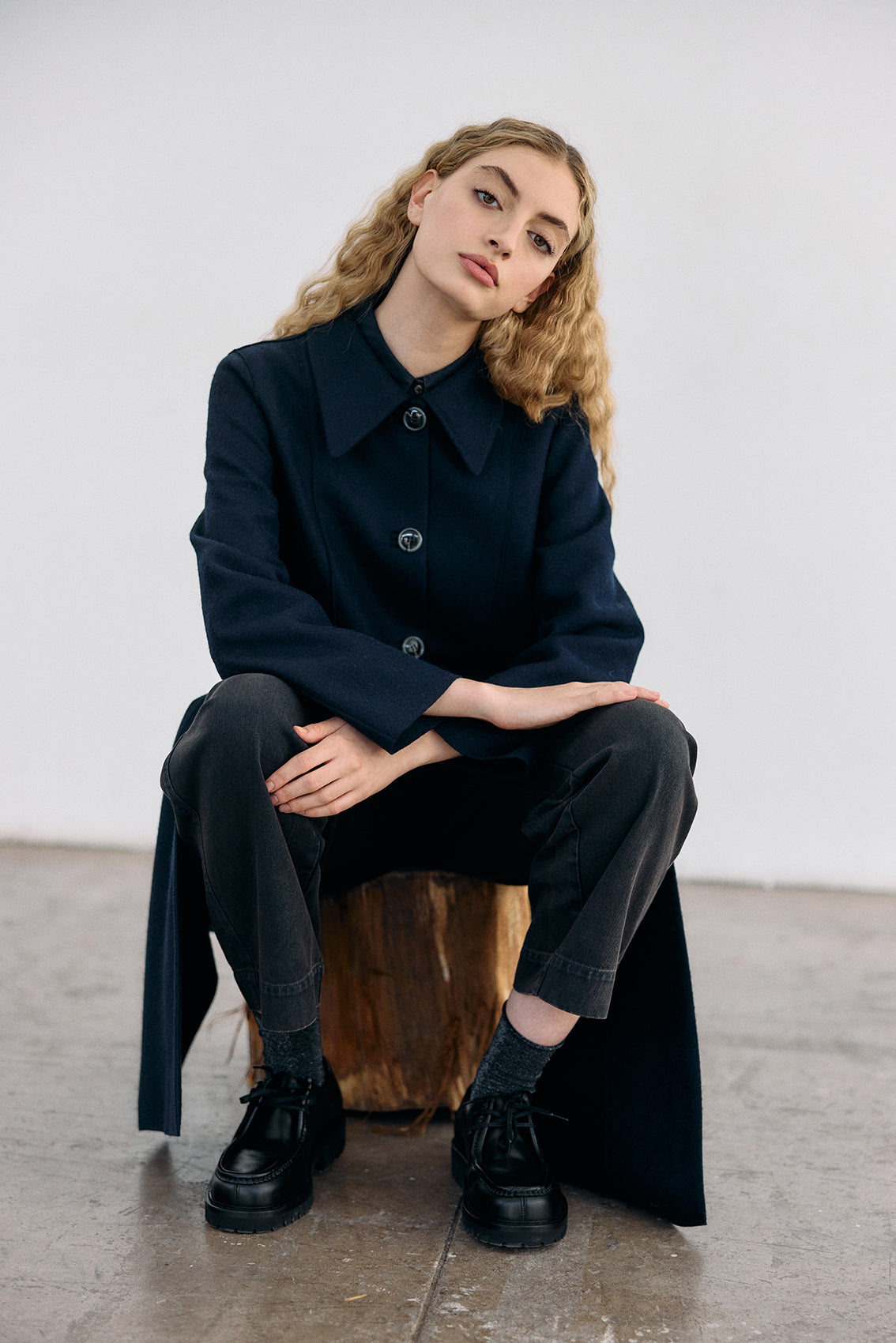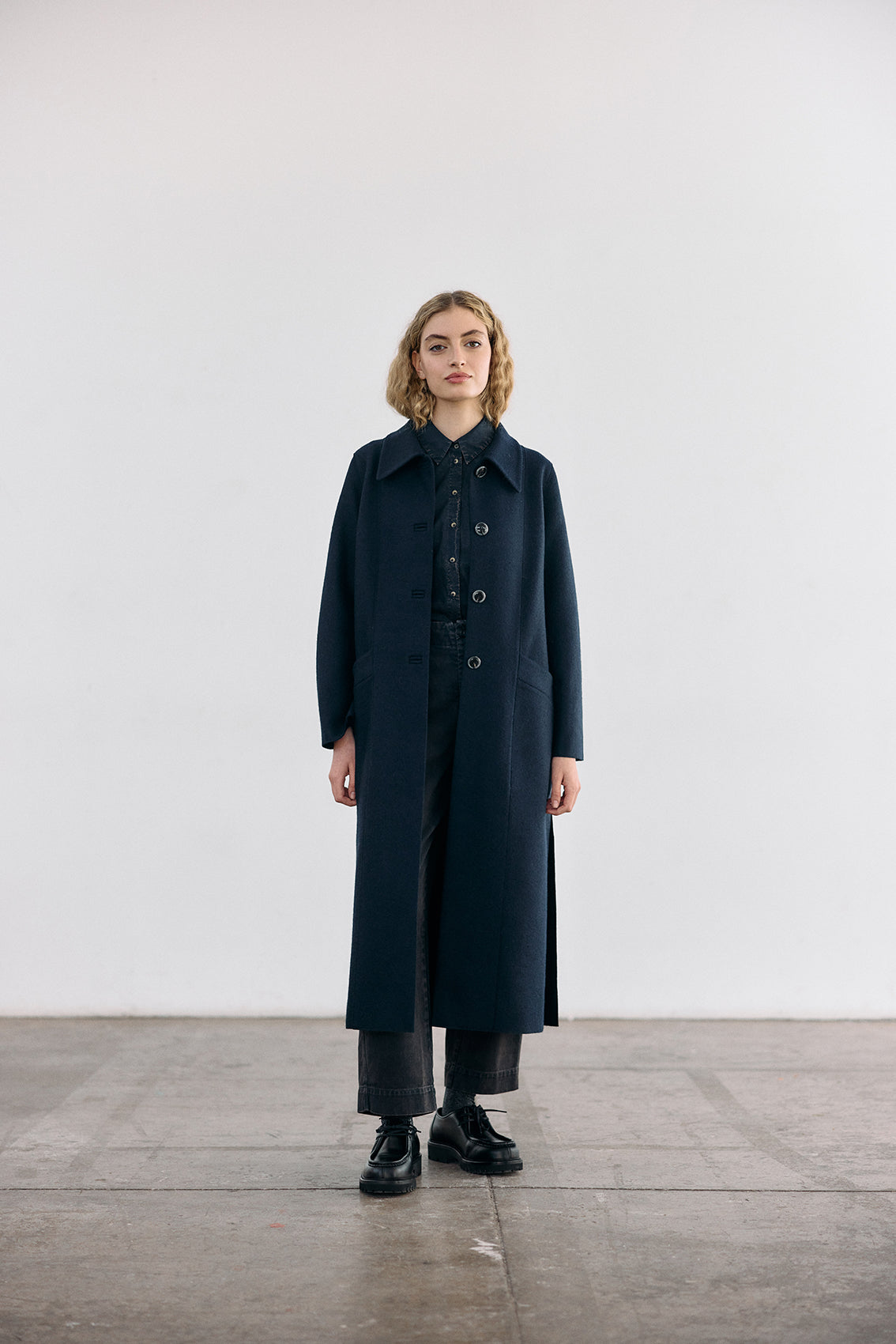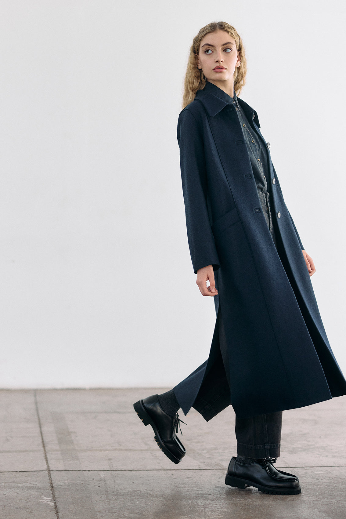 Collared Felted Alpaca/Wool Long Coat - Medianoche