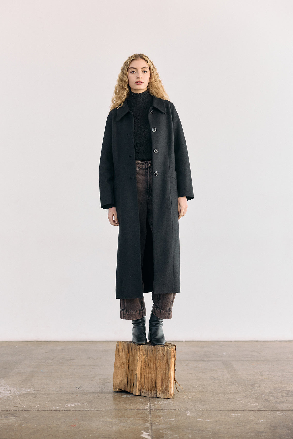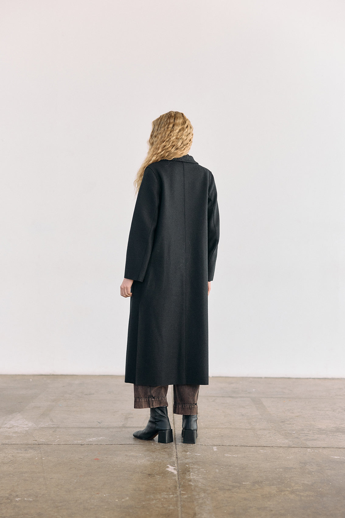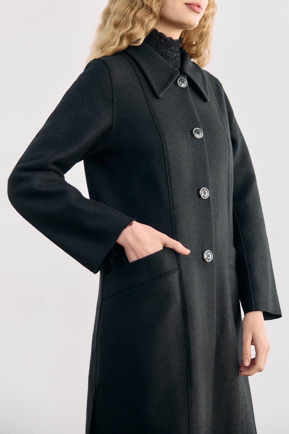 Collared Felted Alpaca/Wool Long Coat - Ónix