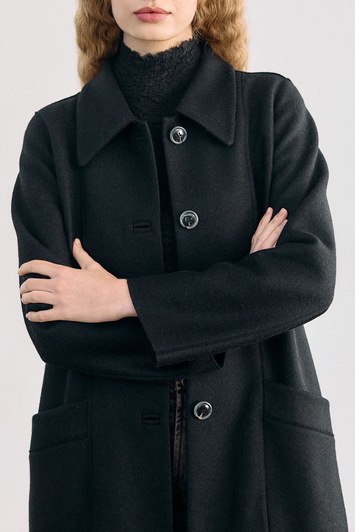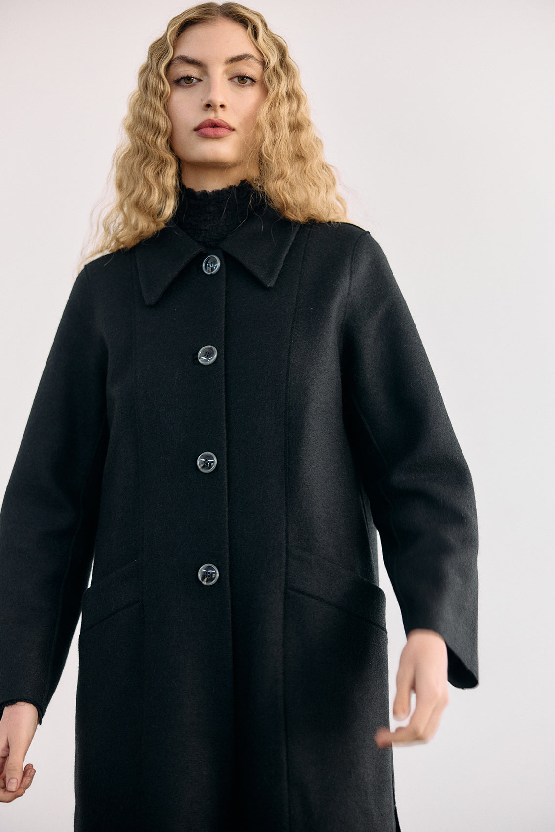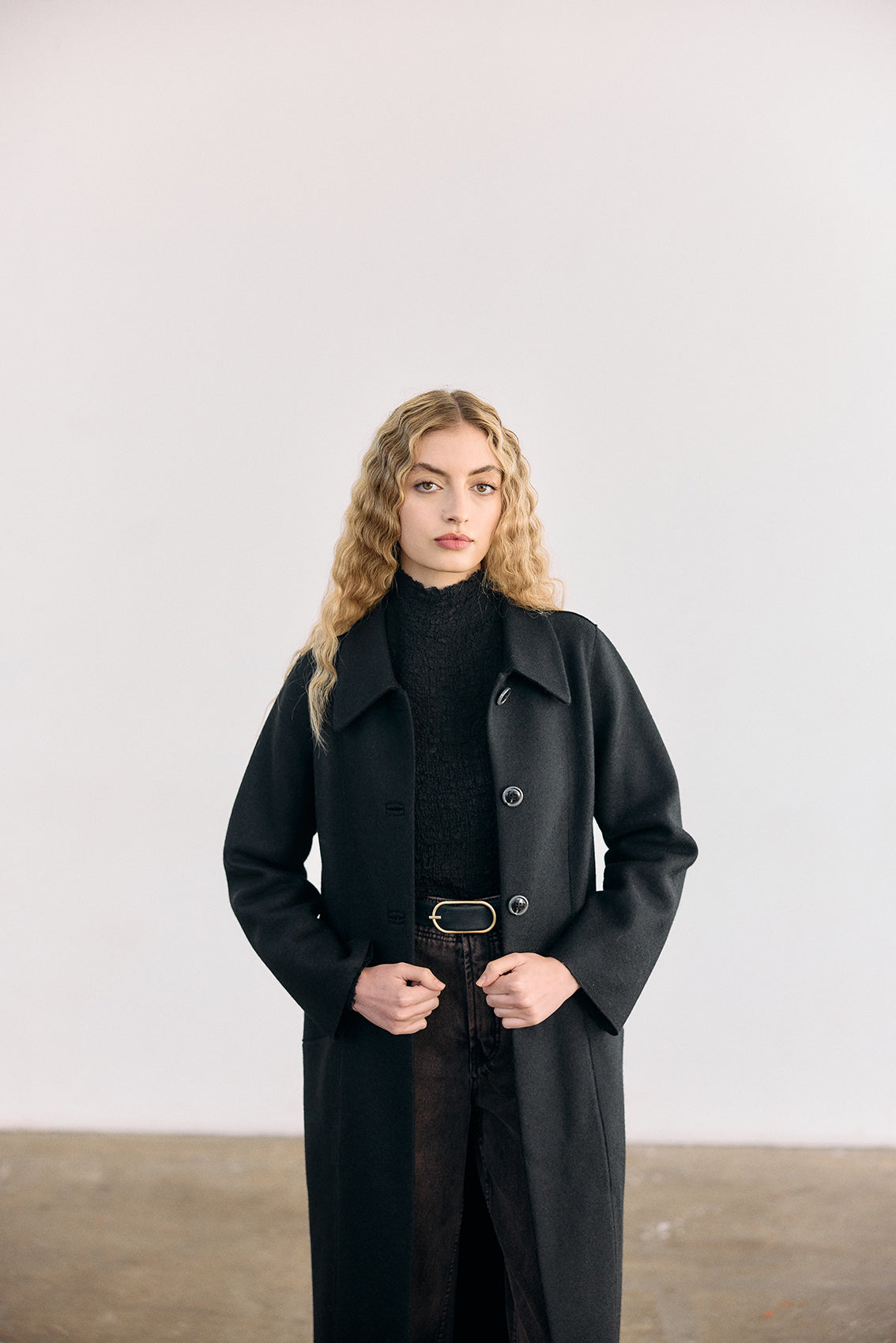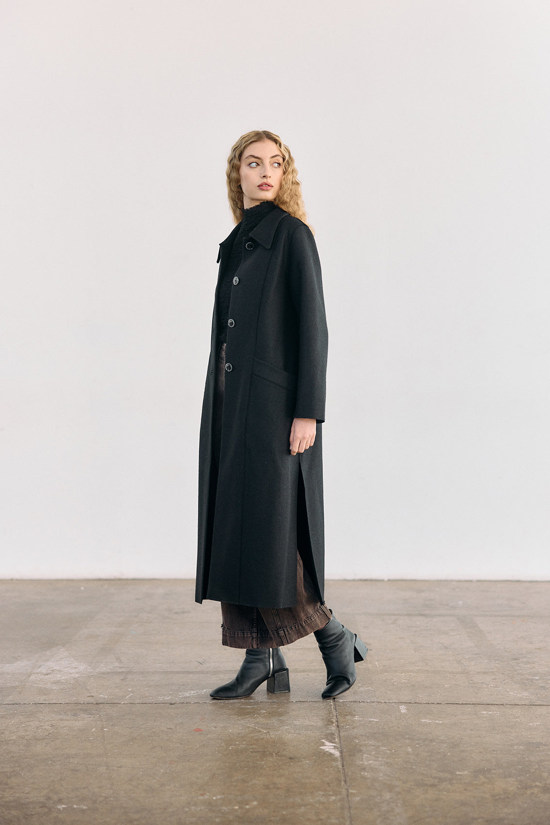 Collared Felted Alpaca/Wool Long Coat - Ónix