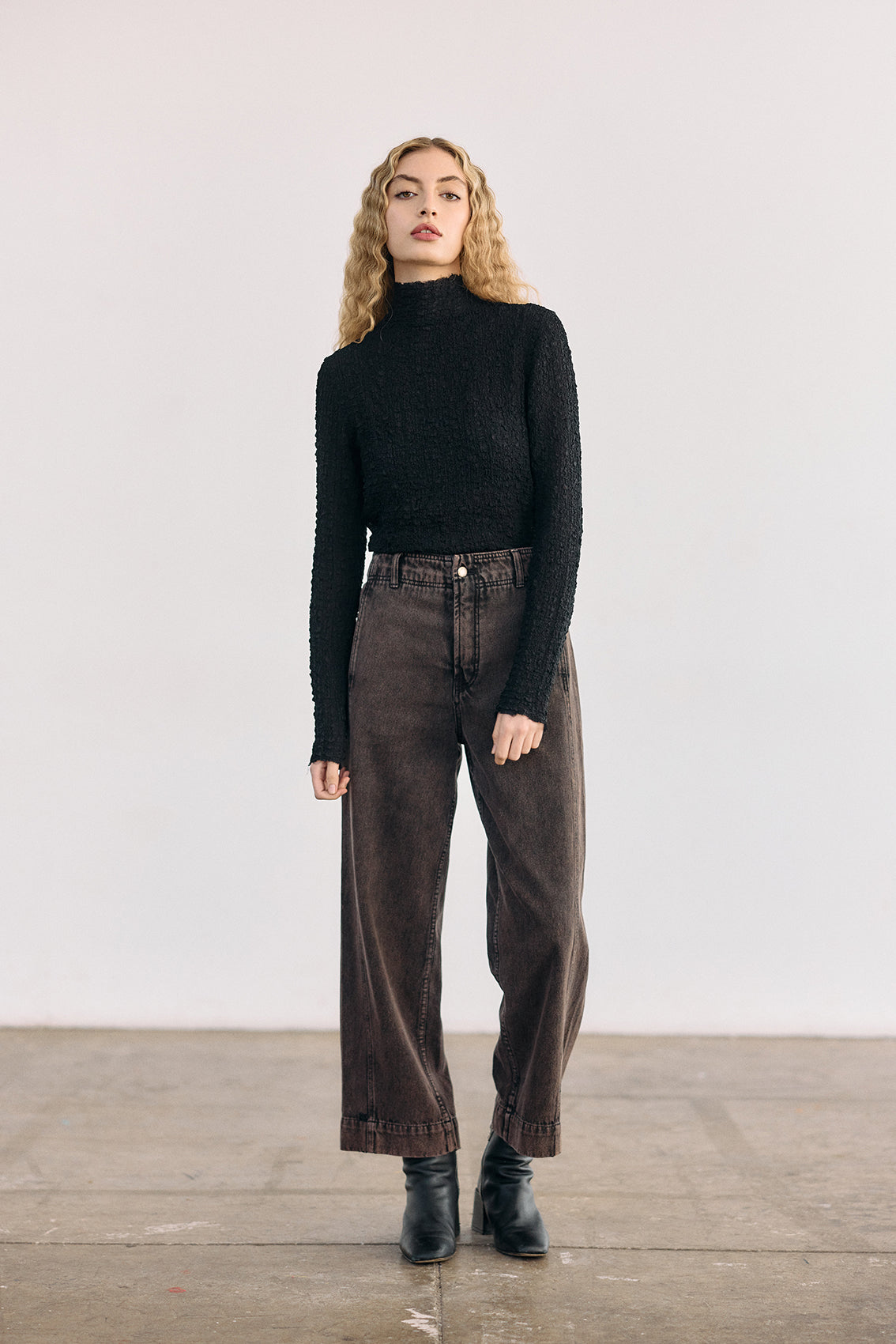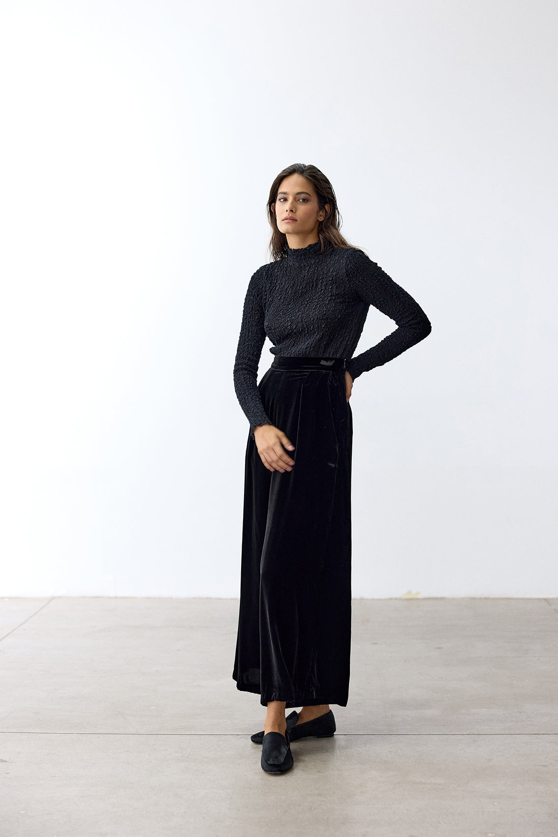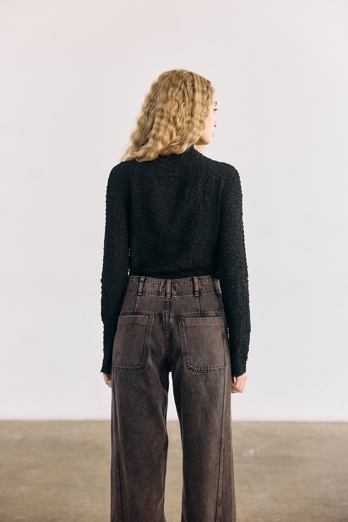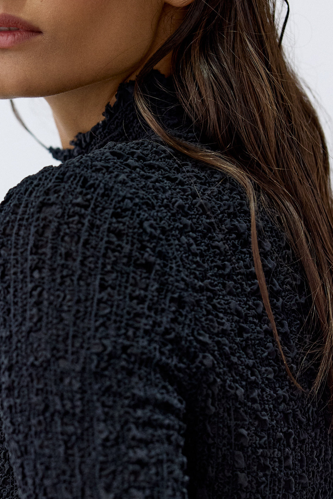 Crinkle Texture Silk Turtleneck Top - Ónix