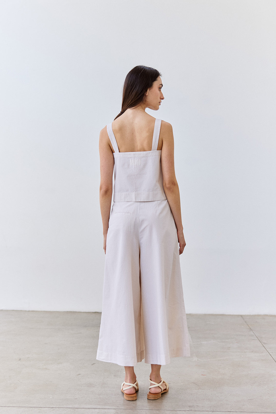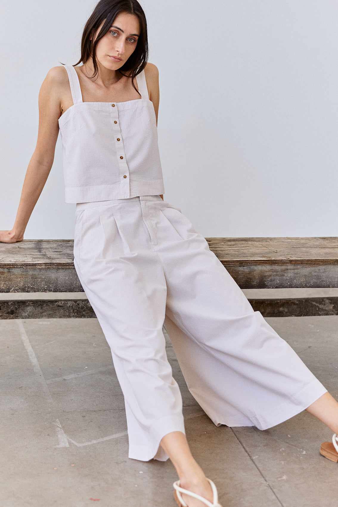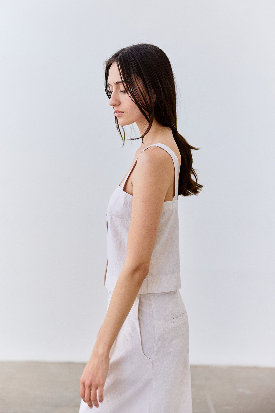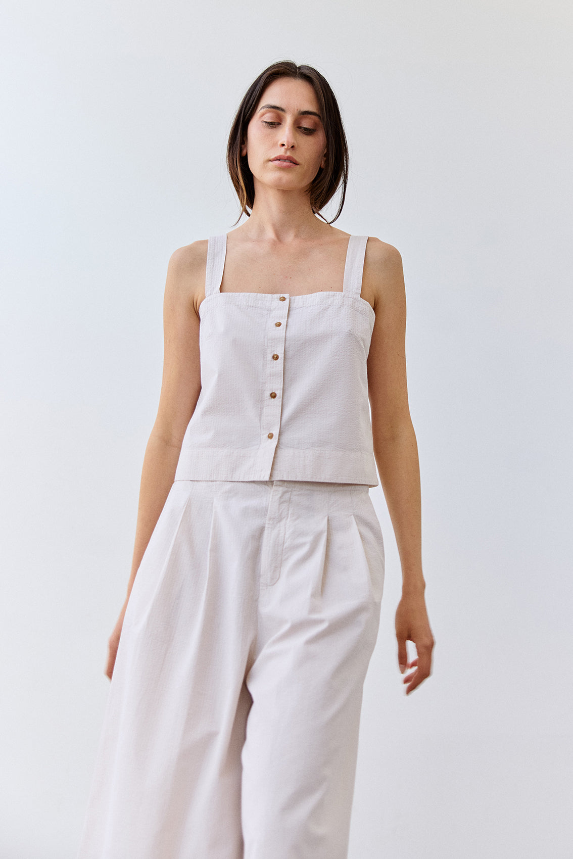 Cropped Buttoned Seersucker Cotton Top - Crudo