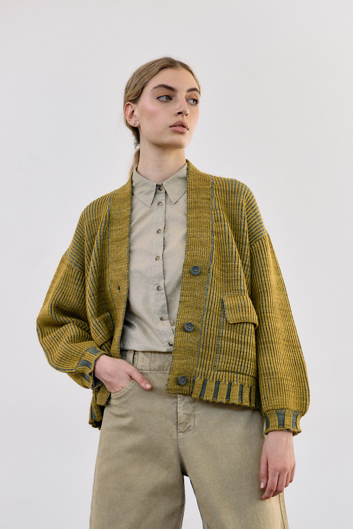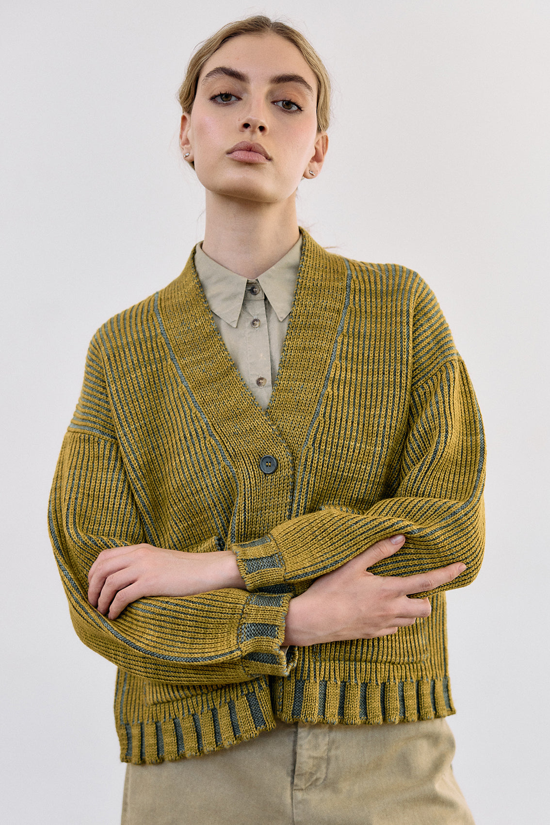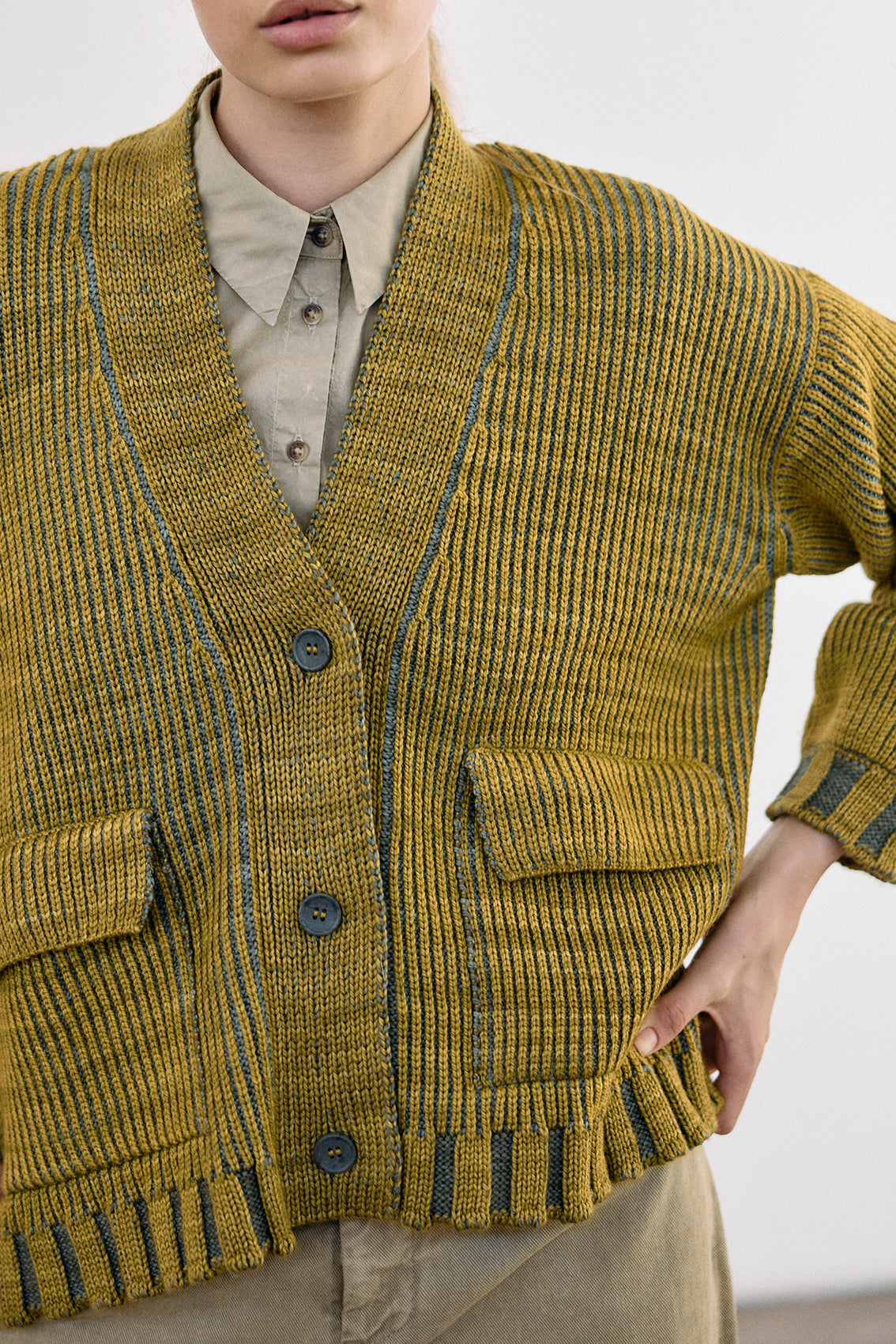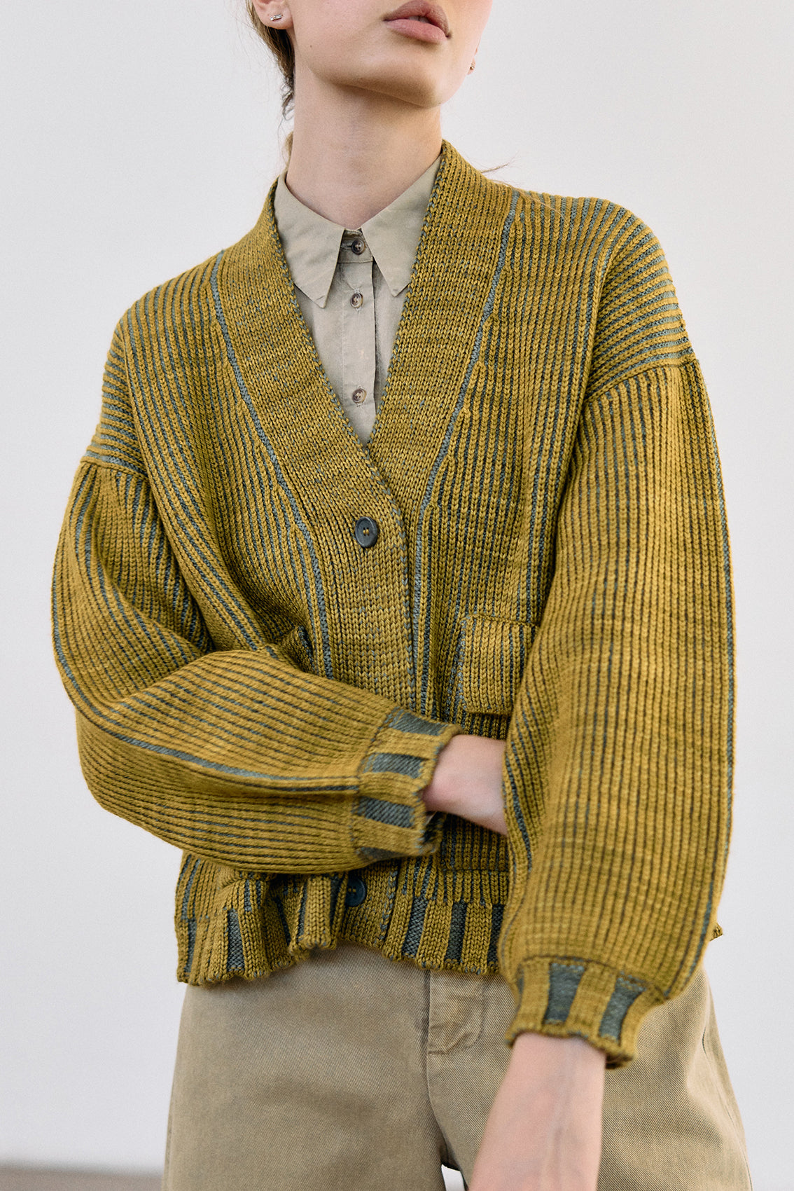 Hand-Dyed Contrast Merino Wool Cardigan - Mix Ocre