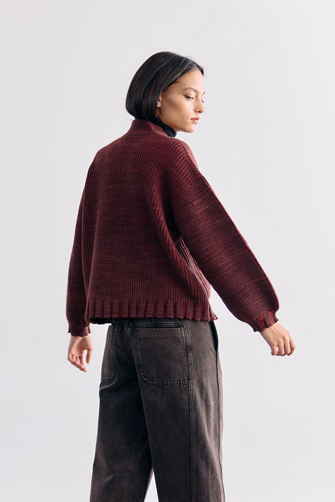 Hand-Dyed Contrast Merino Wool Cardigan - Mix Vino