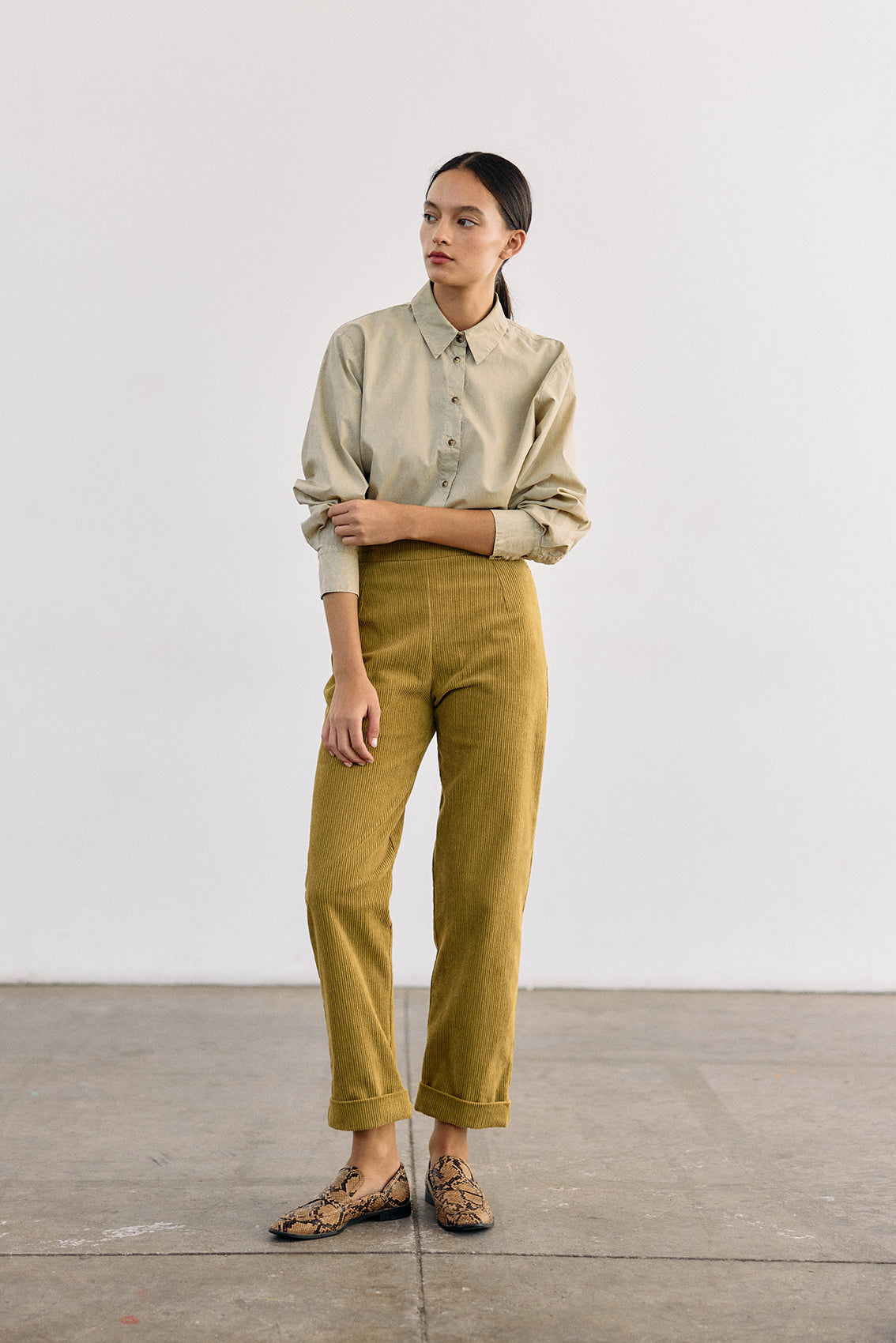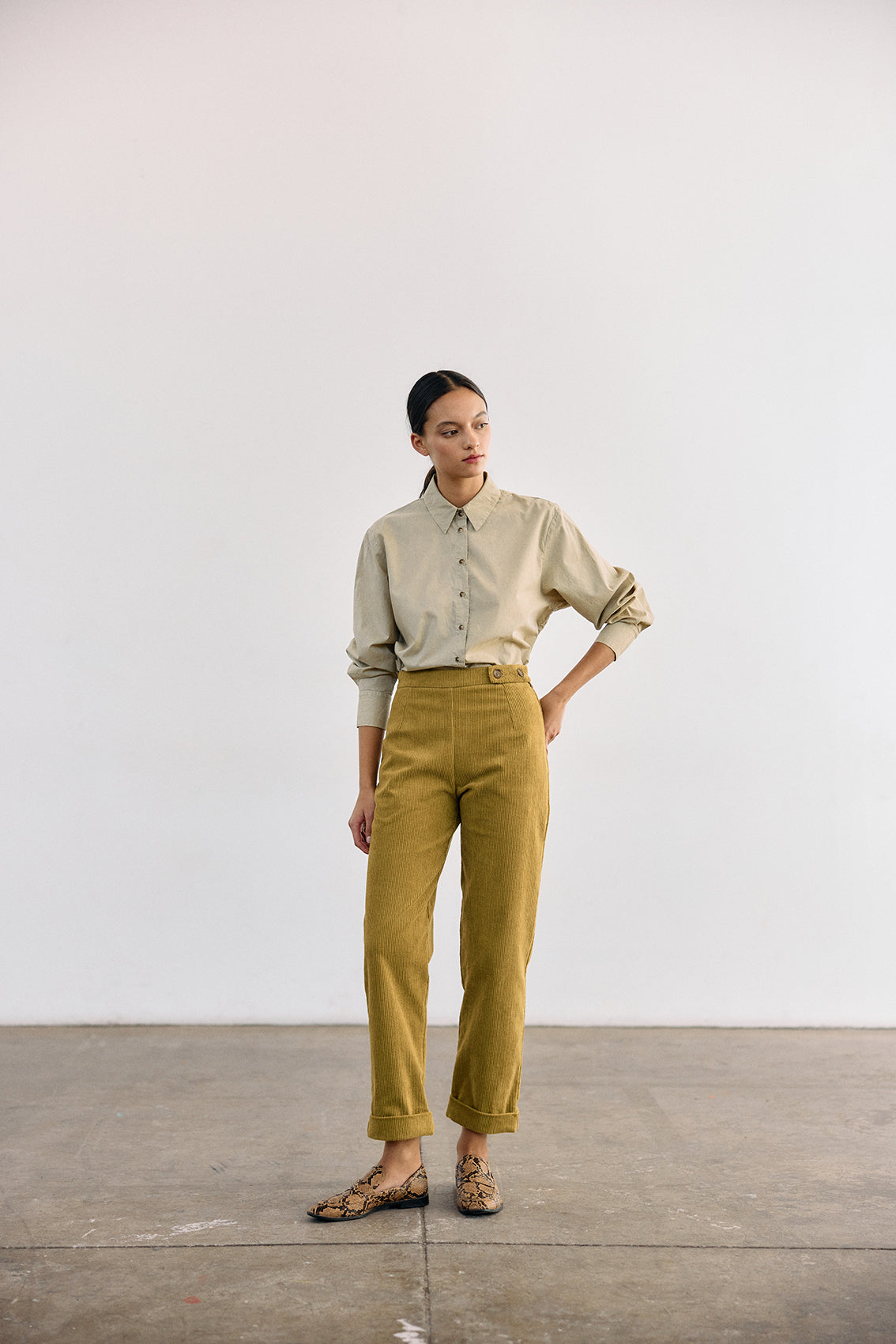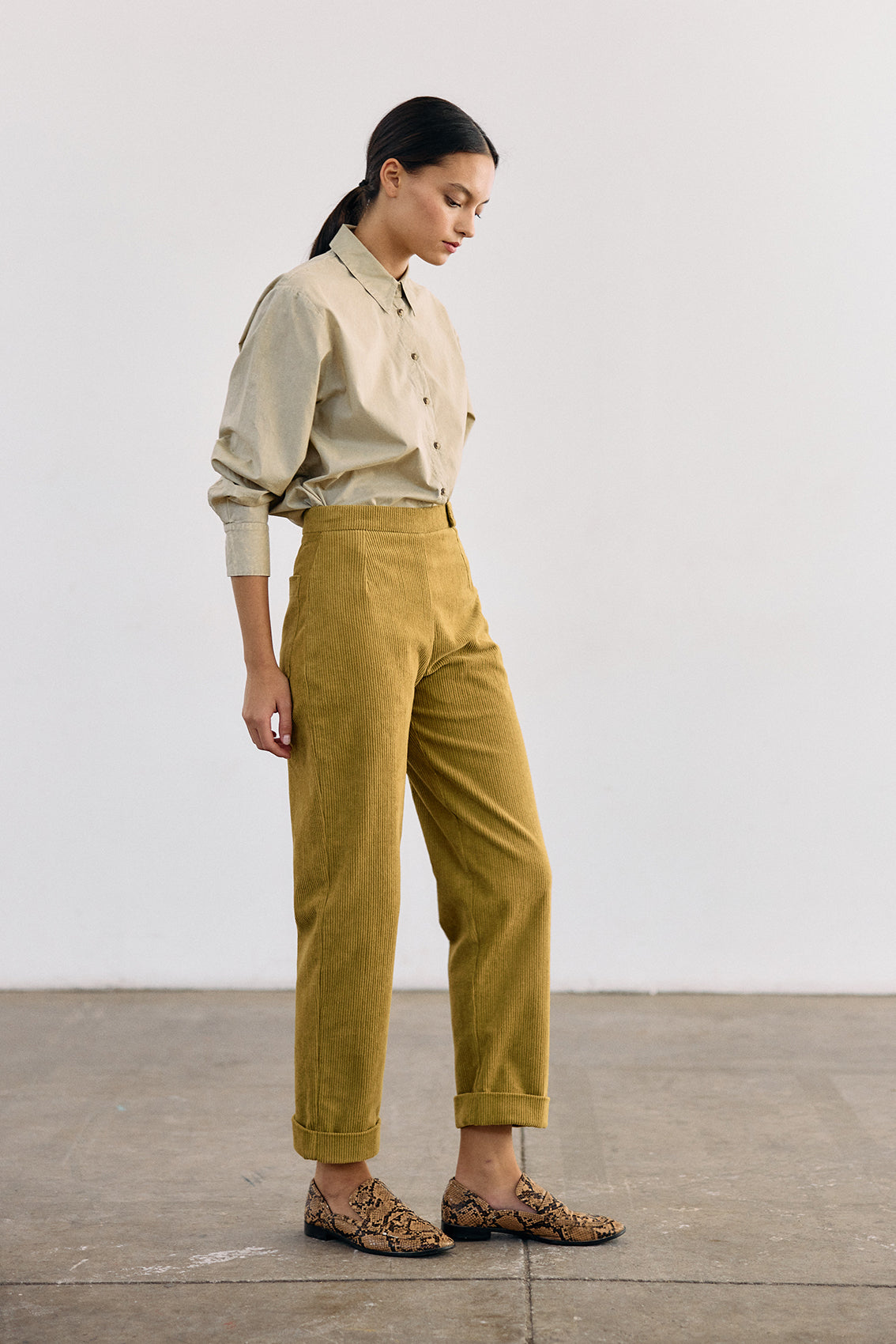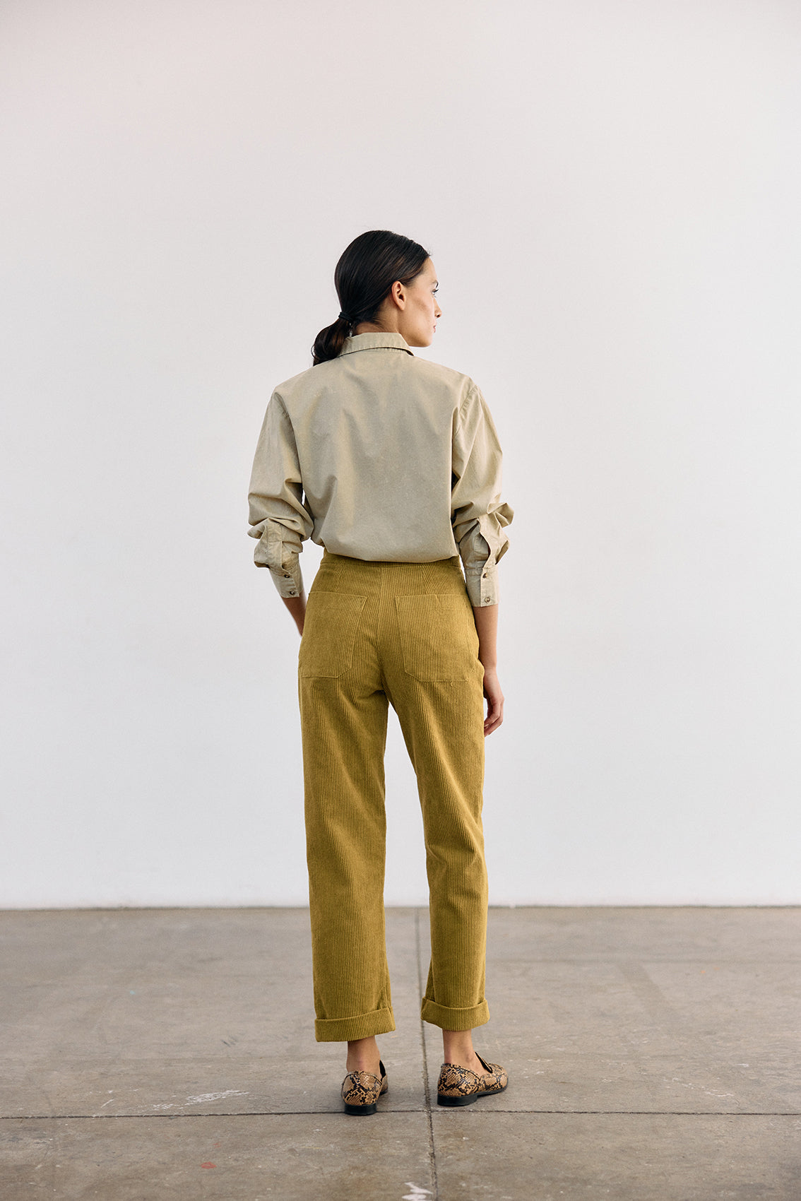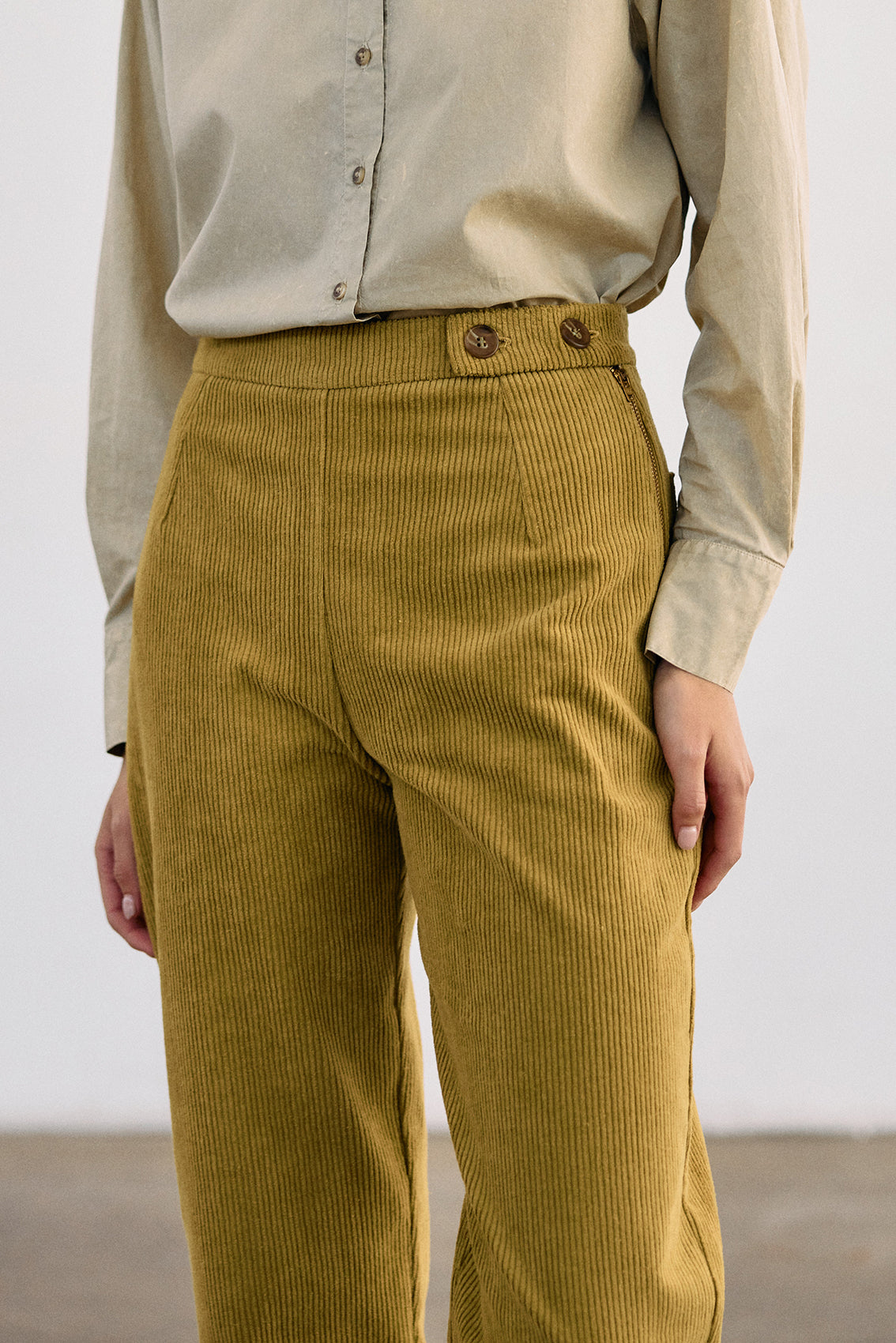 High-Waisted Cotton Corduroy Trousers - Ocre
