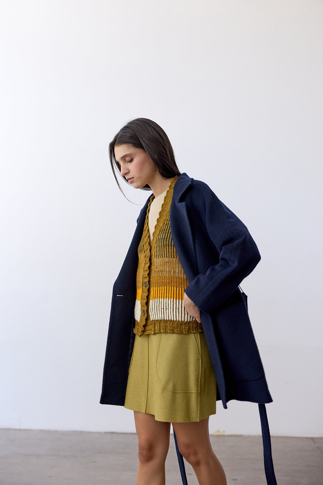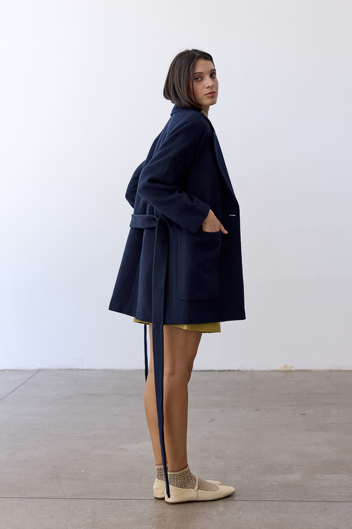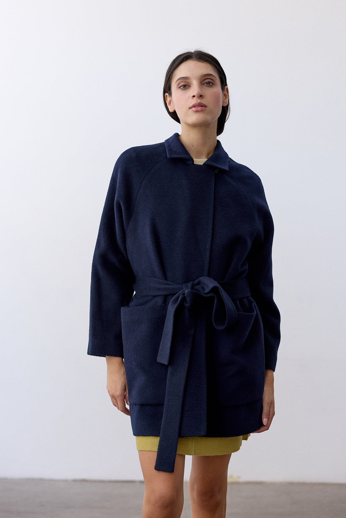 Notch Collar Short Baby Alpaca Coat - Medianoche