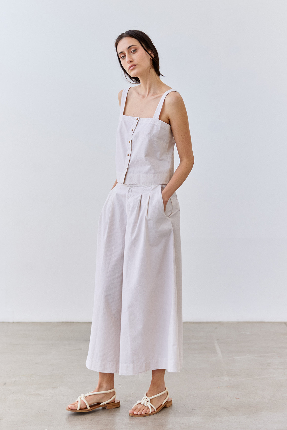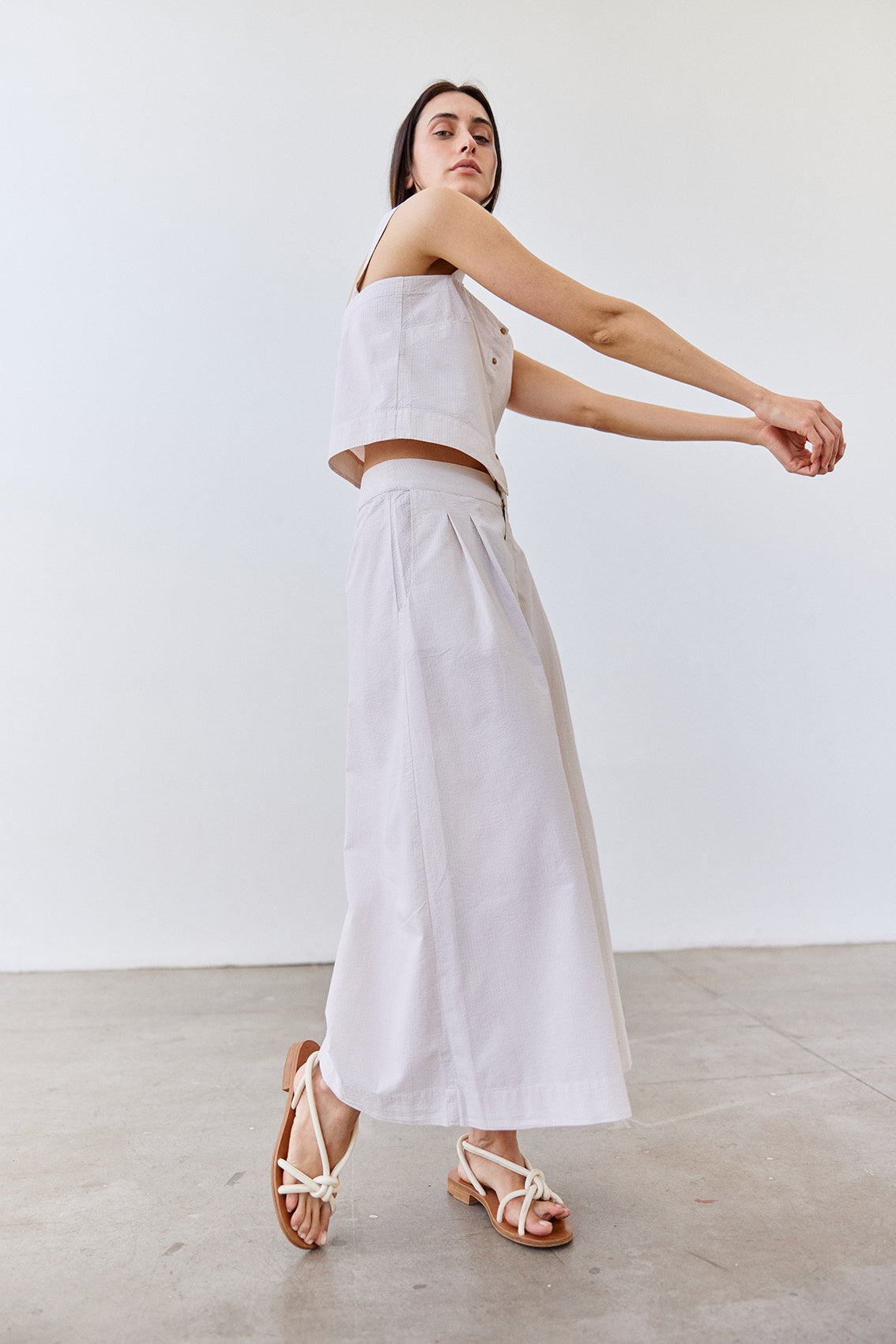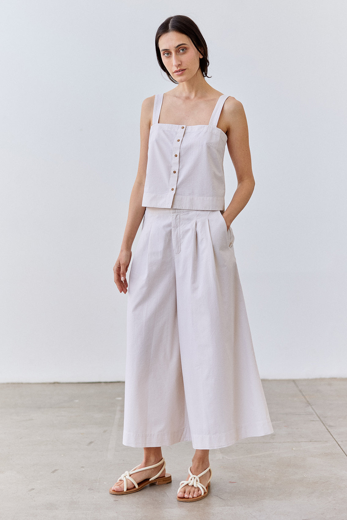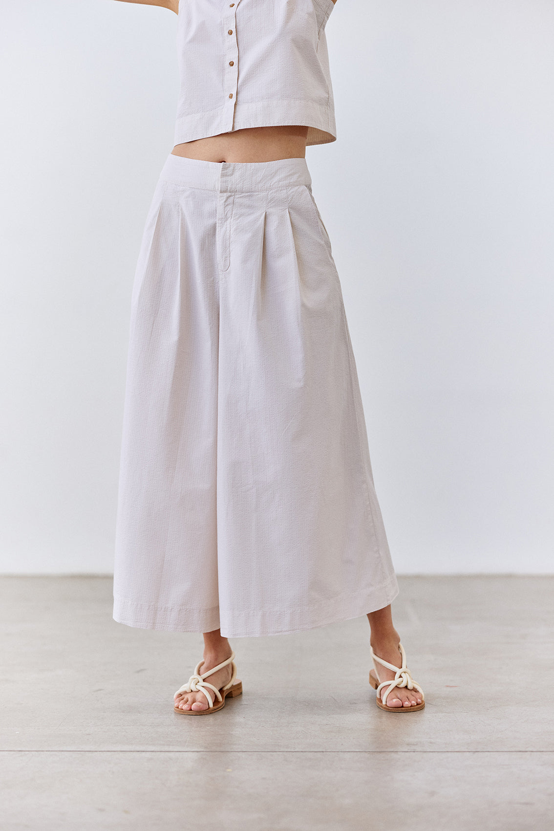 Pleated Wide-Leg Seersucker Cotton Trousers - Crudo