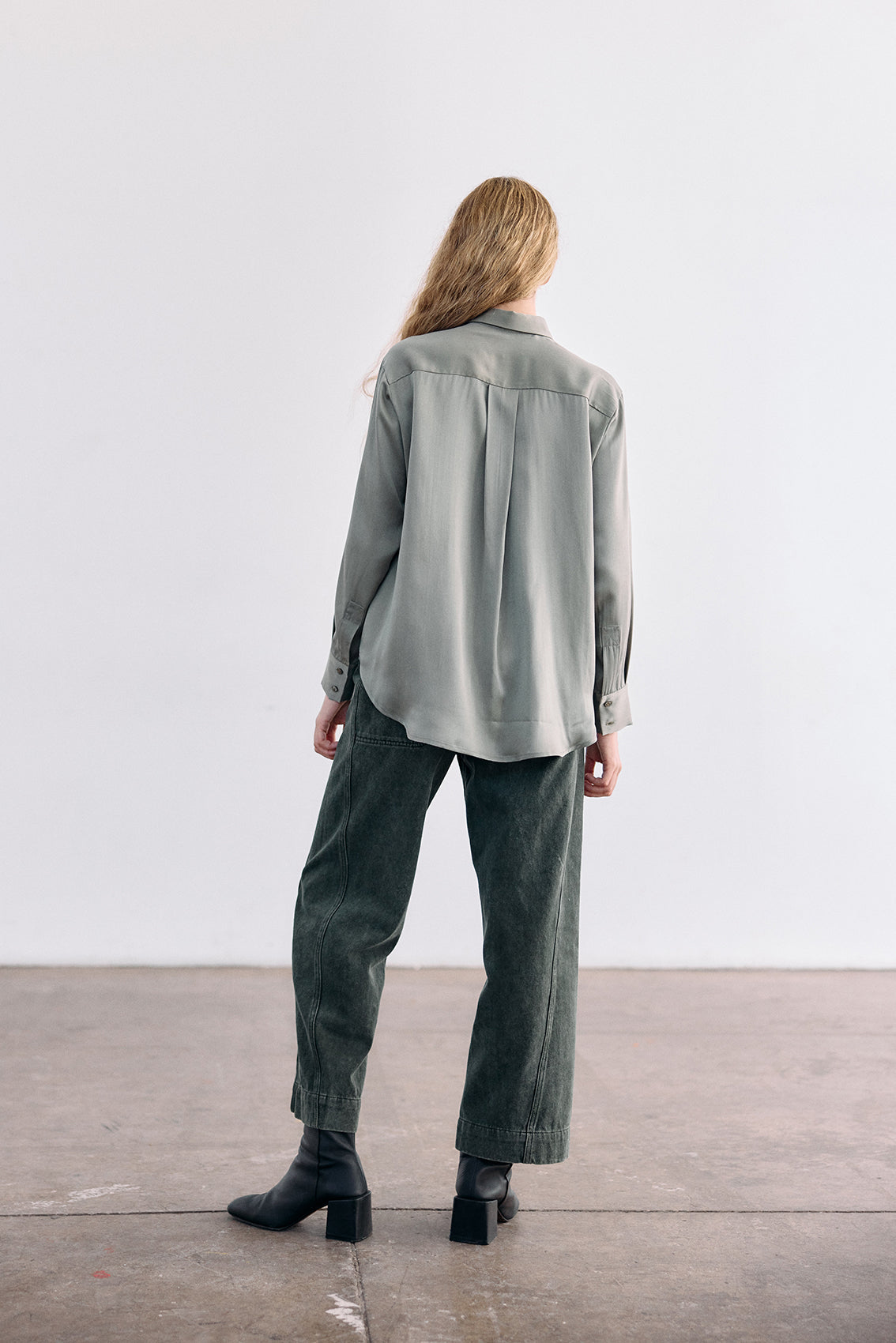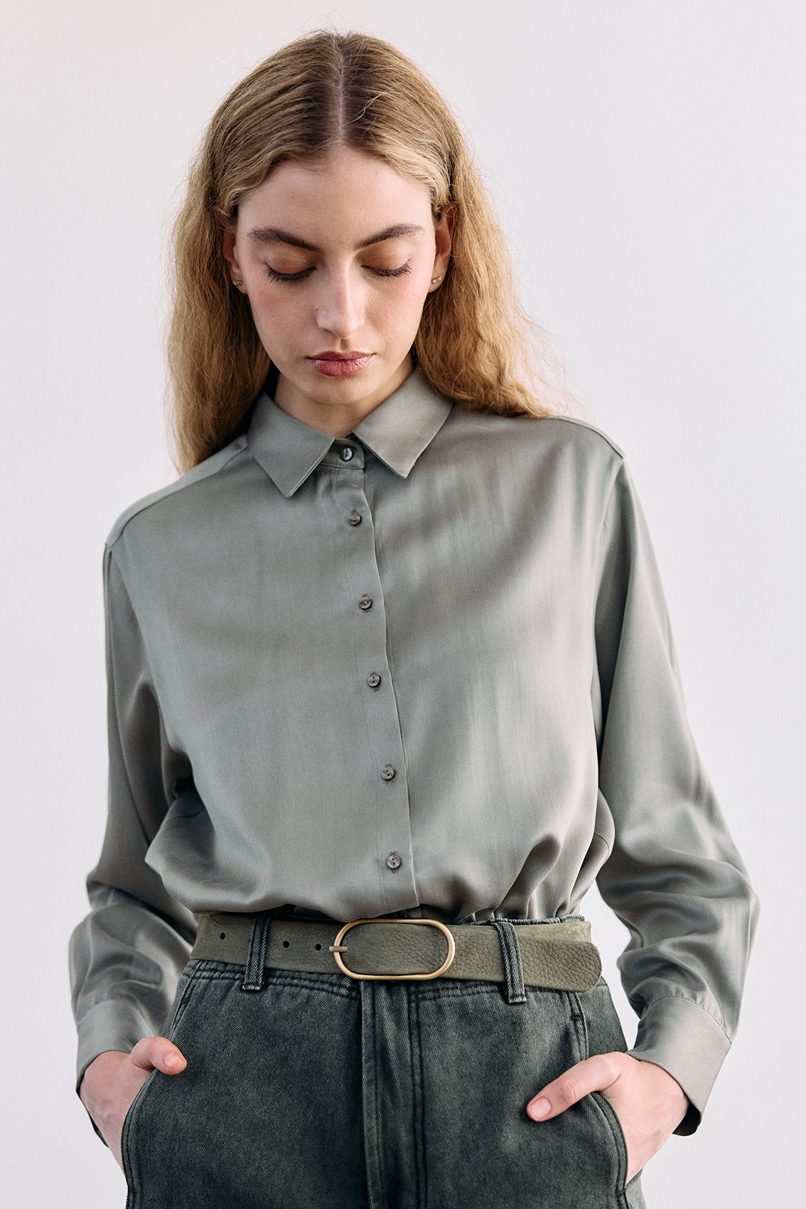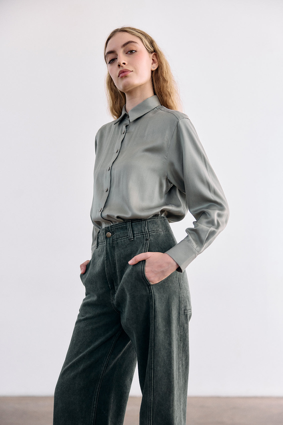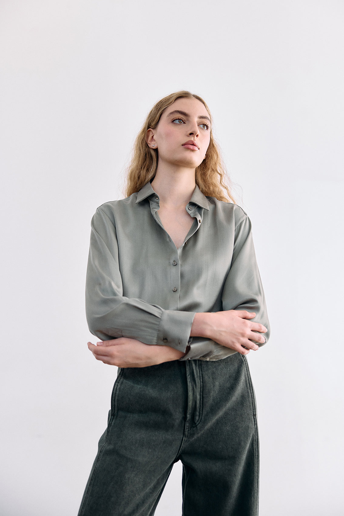 Pointed Collar Silk Button-Down Shirt - Musgo