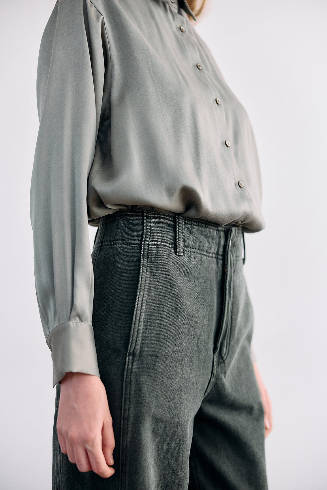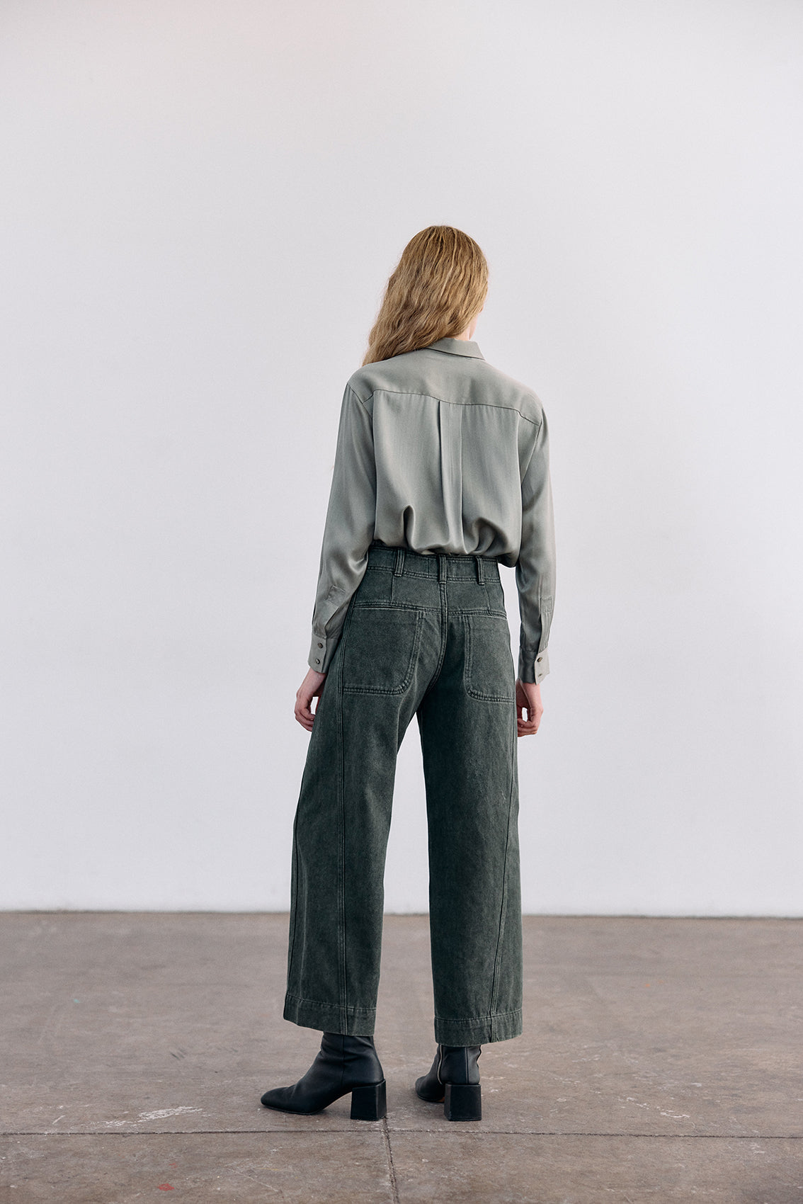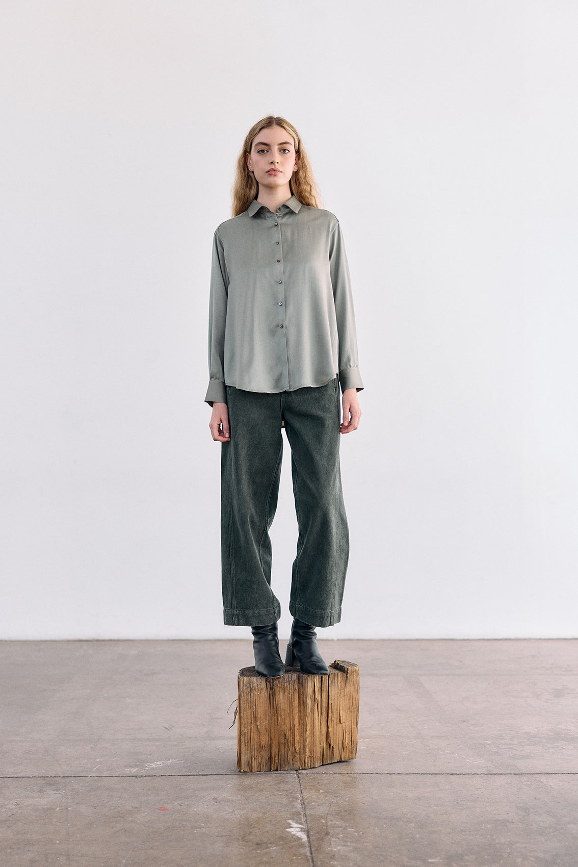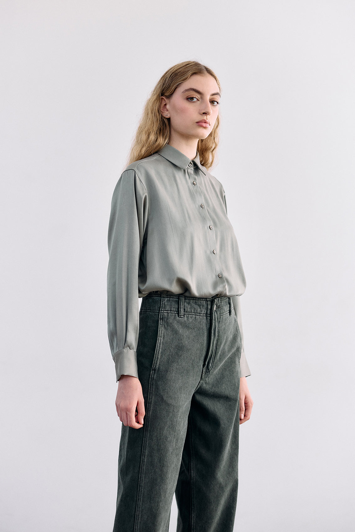 Pointed Collar Silk Button-Down Shirt - Musgo
