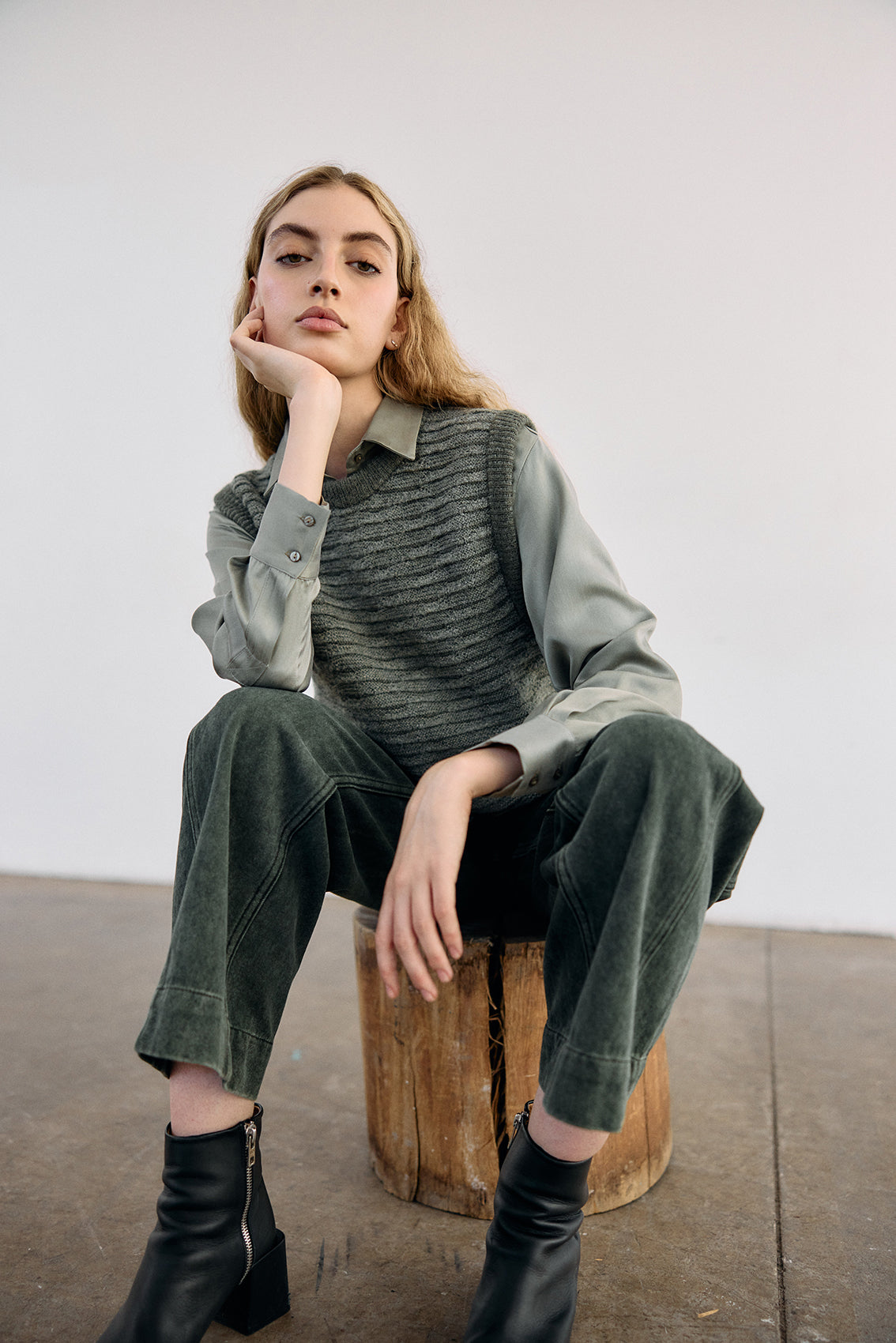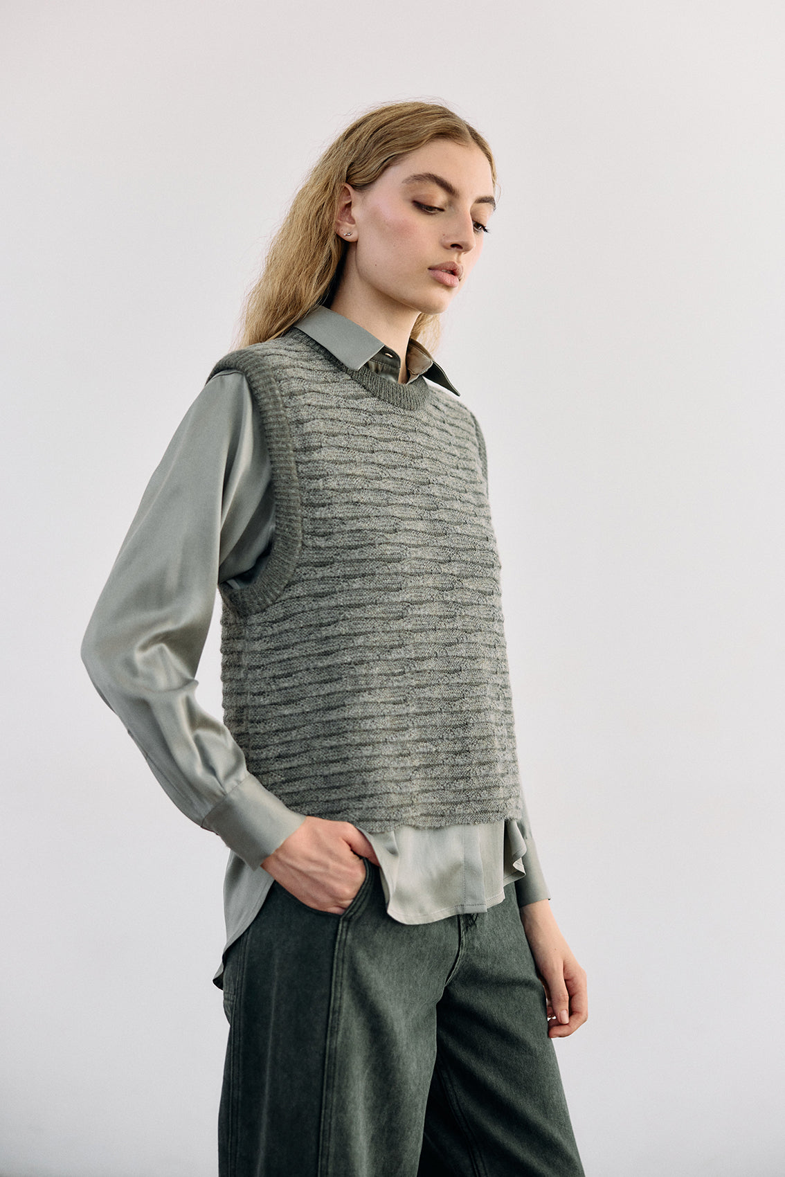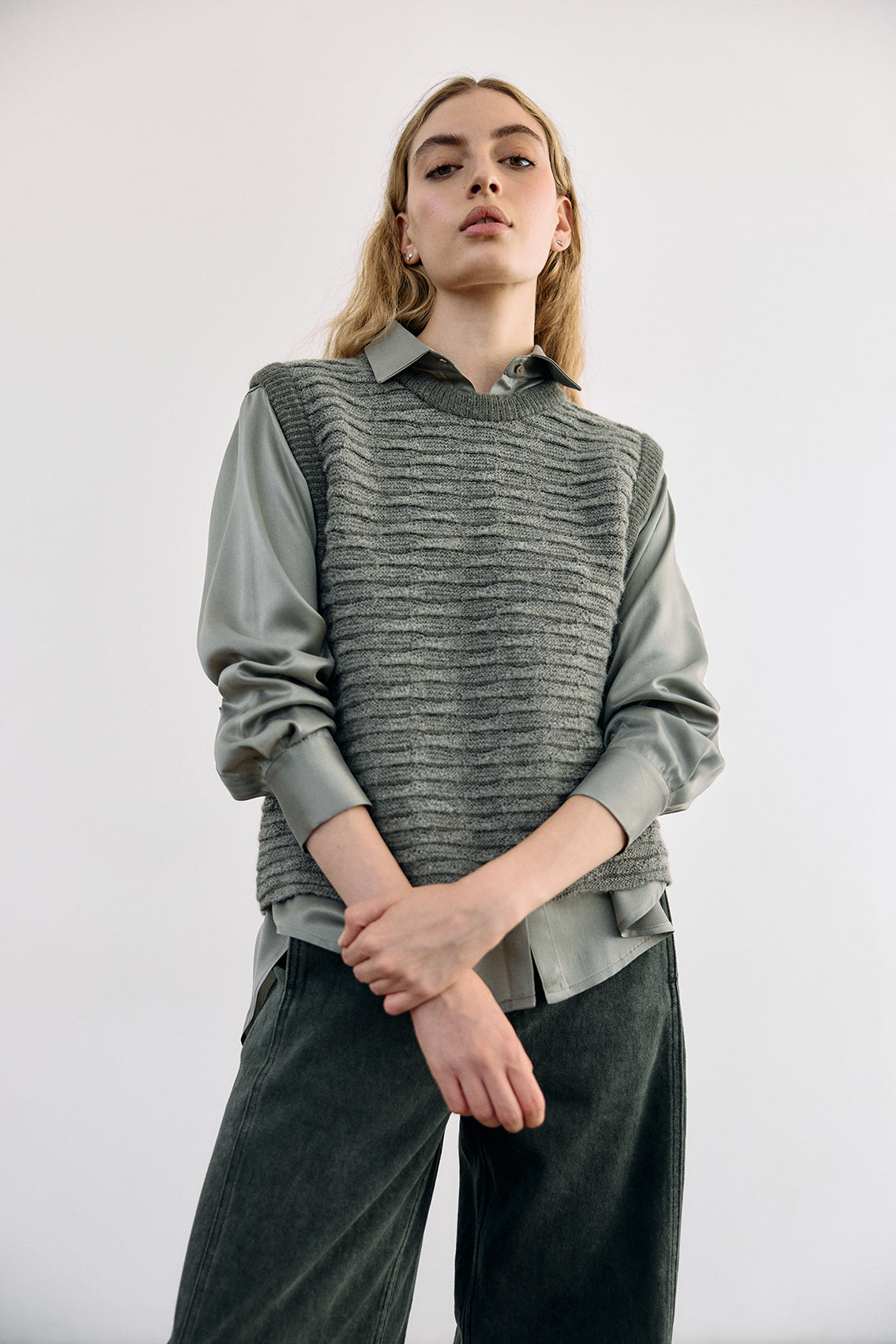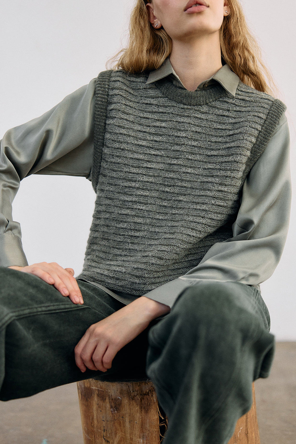 Textured Alpaca Knit Sweater Vest - Musgo